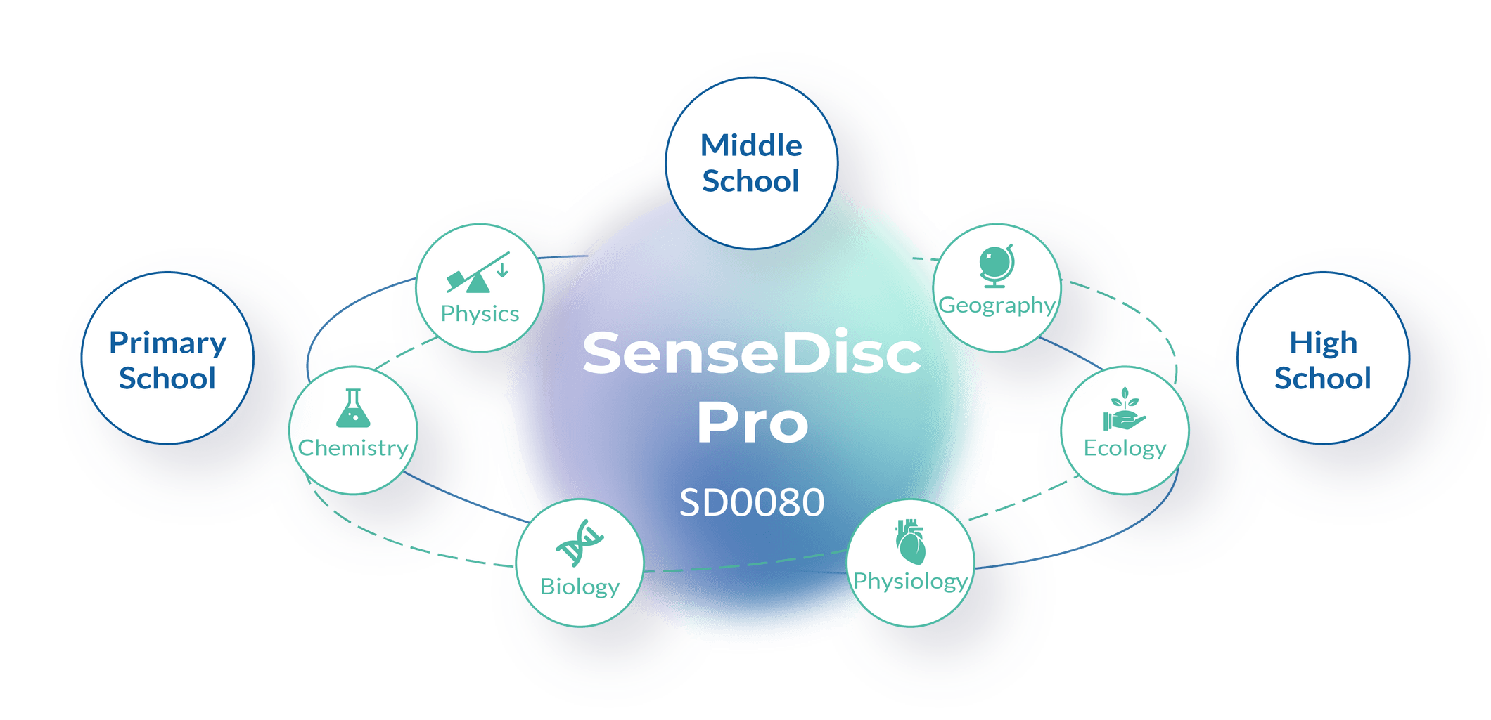 SenseDisc is a powerful, compact and lightweight digital experimental system, which can meet the experimental needs of various disciplines in primary and secondary schools. It is equipped with wireless connection and compact sensor modules, creating a cable-free and simple experimental environment for students to explore the scientific world.