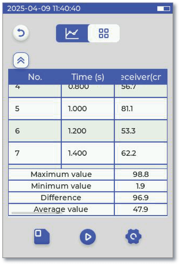 Supports two experiment recording modes: curve and table. The graph line mode supports zoom and mirror settings.
