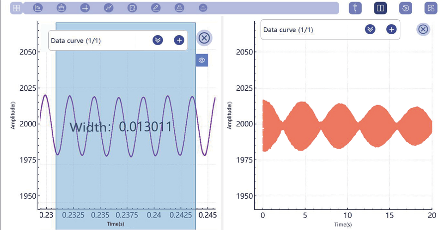 The data graph supports detailed operations such as zoom, selection, coordinate display, editing, graph-to-table conversion, and provides powerful data statistics, derivatives and integrals, curve fitting and other functions, which are convenient for analyzing and processing data before and after experiments.